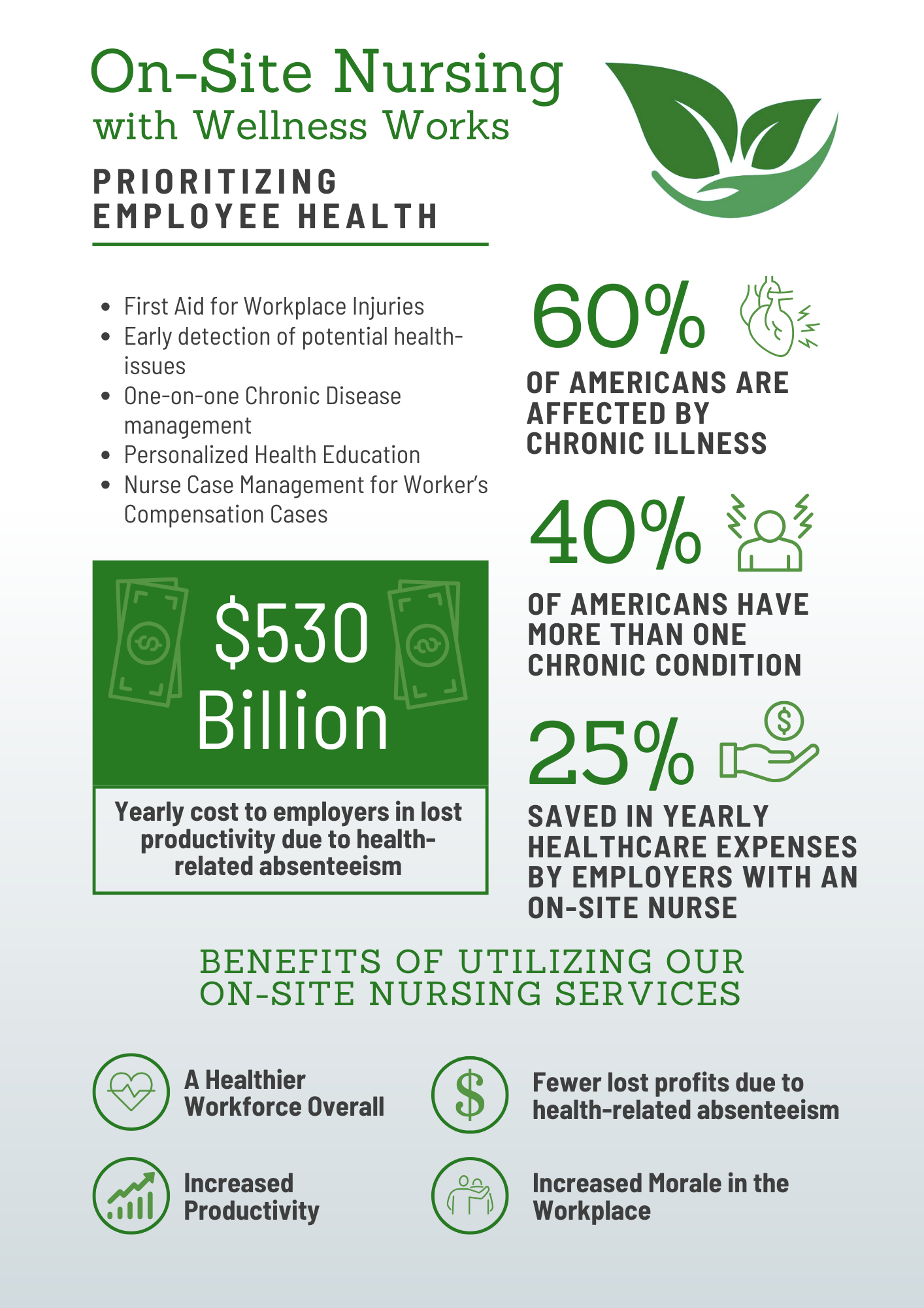 Evidence supports that implementing an occupational health nurse is not only good for employees, it is also great for creating the kind of company culture that attracts the very best employees¹. Choosing an occupational health nurse comes with a plethora of cost-saving benefits, such as conducting post-offer physicals and drug screens in house as opposed to outsourcing.